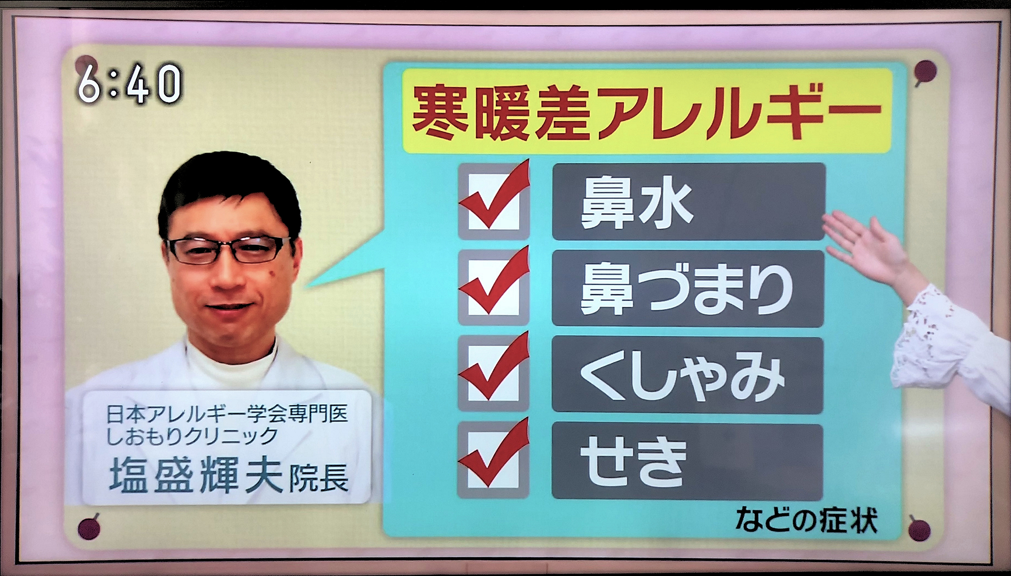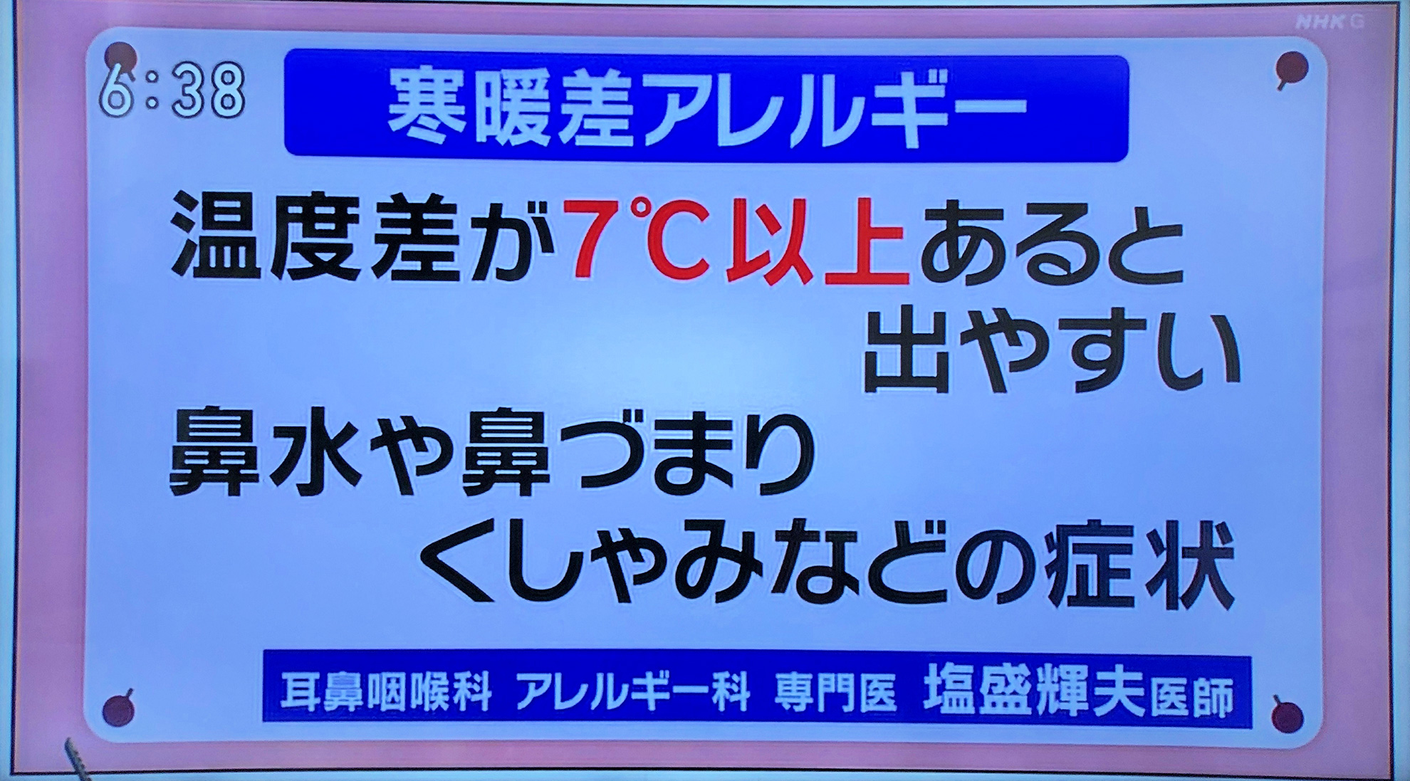 テレビNHKに寒暖差アレルギーの内容で当院が紹介されました。
